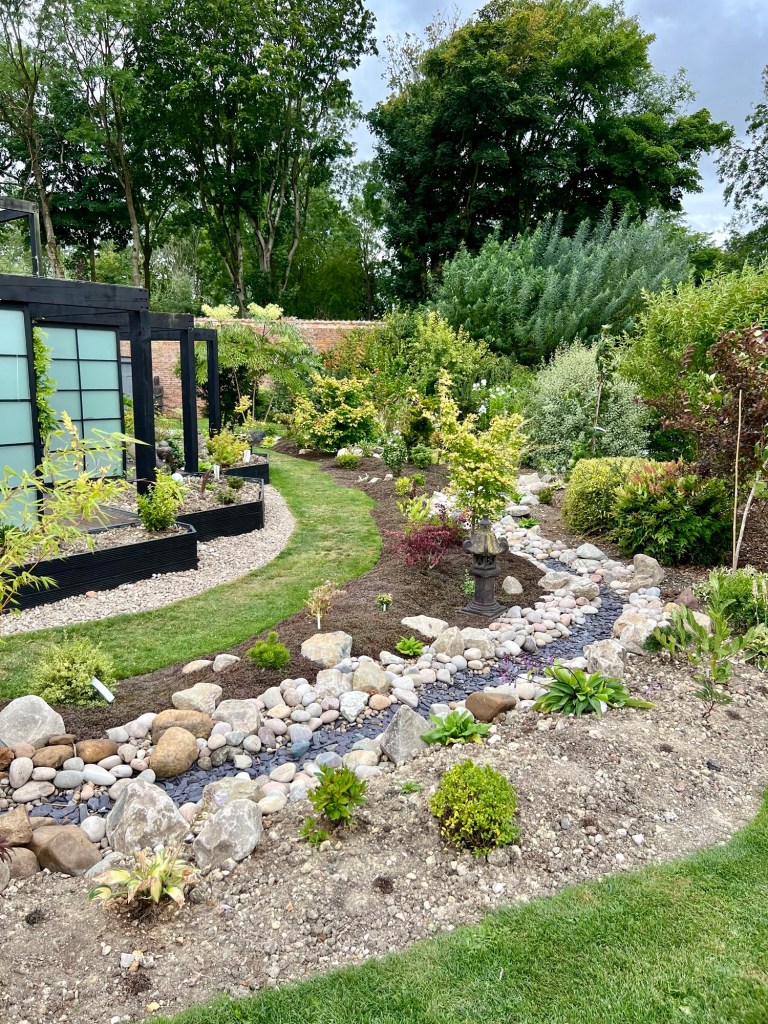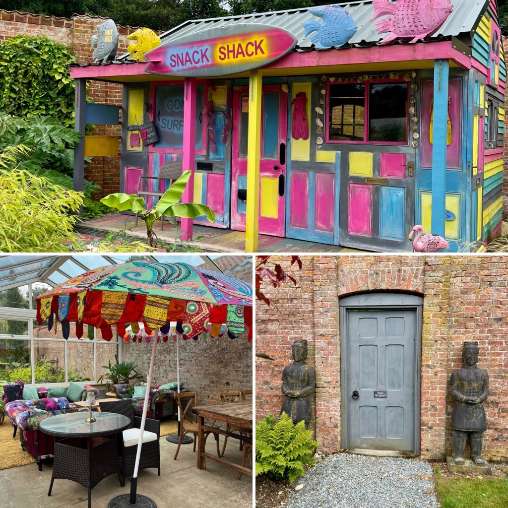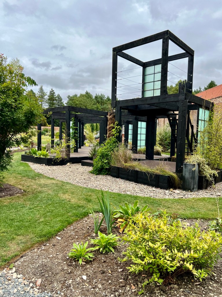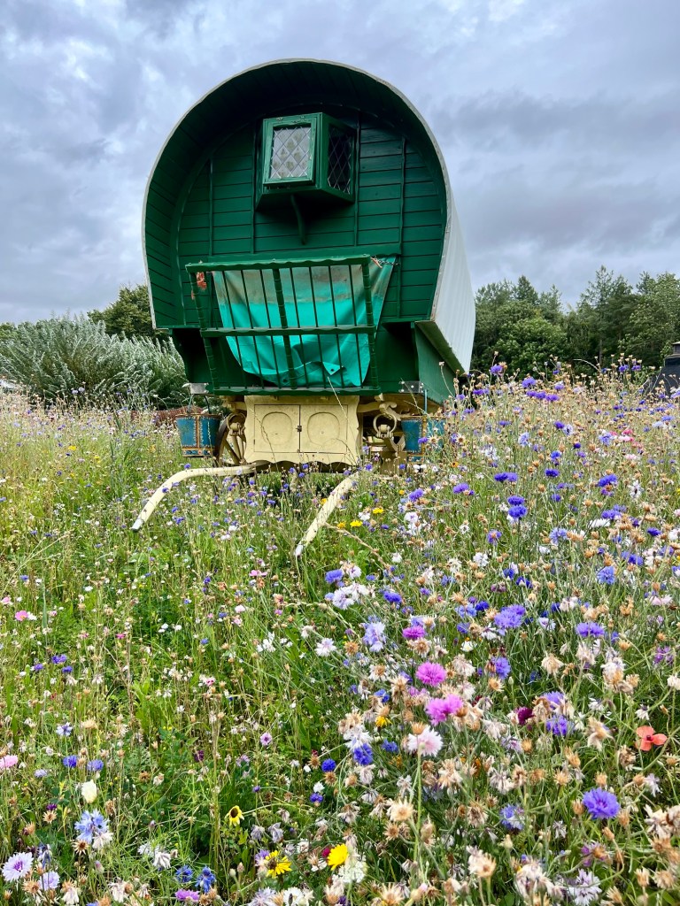 The beach huts are an unexpected find in the middle of a walled garden . . . . . Until you see the spectacular pond and ‘beach’. The Japanese inspired pavilion was the inspiration behind our ‘cube’ at the Vikings Retreat. My favourite exhibit this year is the cornflower meadow around a traditional Romany Caravan. The Walled Garden is also a beautiful Wedding Venue with quirky areas for guests ! The planting is inspiring and there is always an idea to take away with you!